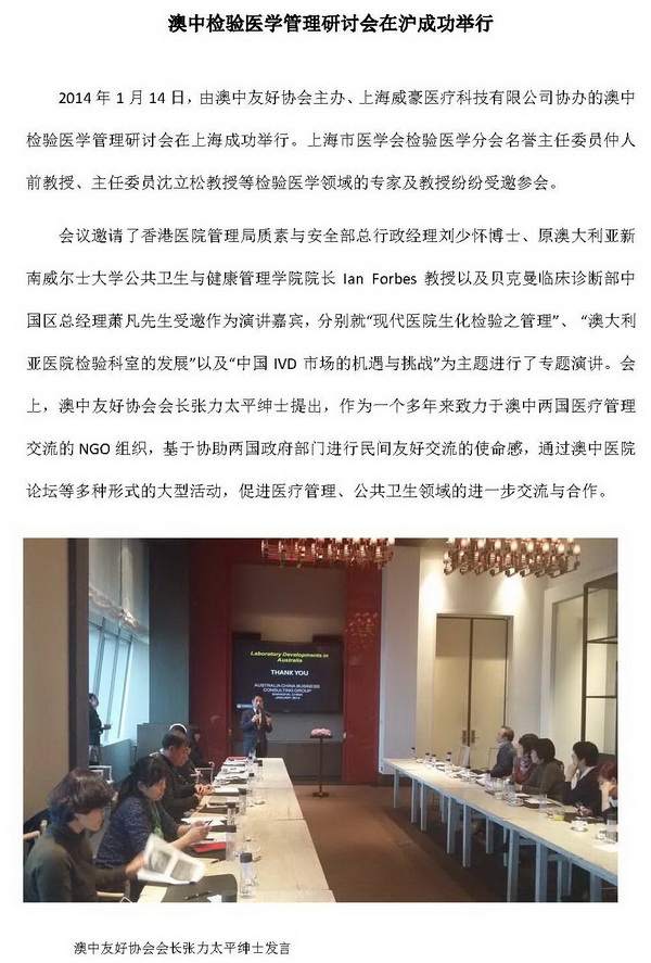 2014澳中检验医学管理研讨会(中国.上海) 详细内容